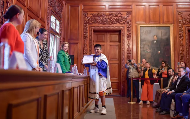 La mandataria estatal recibió al Gabinete Infantil en el Salón Rojo de Palacio de Gobierno, así como a la Gobernadora Infantil por un día, Kimberly Alejandra Hernández Cruz, originaria del municipio de Bocoyna, a quien dirigió unas palabras y distinguió por ocupar el cargo.